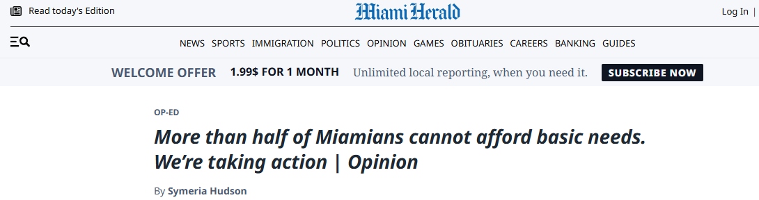 文章表示,在邁阿密,現(xiàn)實(shí)令人清醒:戴德縣超過(guò)五十萬(wàn)個(gè)家庭難以負(fù)擔(dān)住房、食品、醫(yī)療、托兒、交通和技術(shù)等必需品和服務(wù)。家庭收入與實(shí)際生活成本之間的差距持續(xù)擴(kuò)大。西默里亞·哈德森在文中強(qiáng)調(diào),這些挑戰(zhàn)并非抽象概念。當(dāng)家庭被迫在支付房租和喂養(yǎng)孩子之間作出選擇時(shí),這并非個(gè)人失敗,而是系統(tǒng)性問(wèn)題。這需要企業(yè)領(lǐng)導(dǎo)者、政策制定者、教育者、醫(yī)療系統(tǒng)、非營(yíng)利組織和普通公民共同努力。