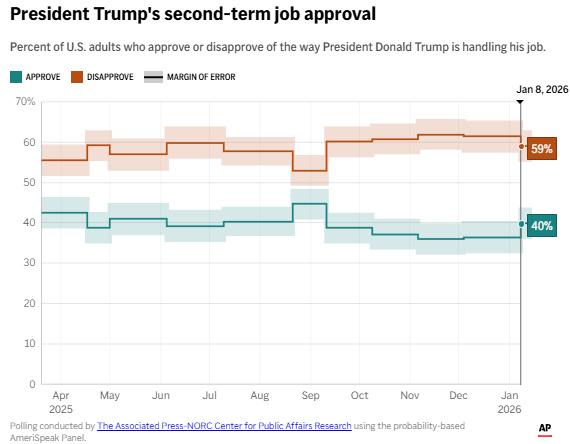 特朗普第二任期執(zhí)政滿意度圖表。圖片來源:美聯(lián)社
