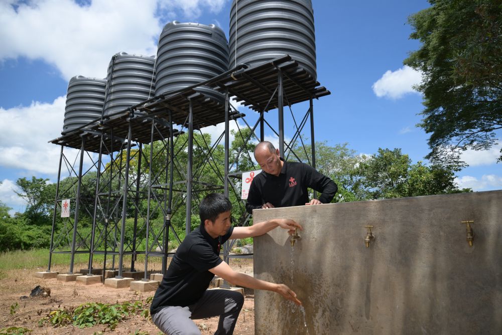 1月26日,在津巴布韋中馬紹納蘭省沙姆瓦地區(qū)津迪村,中國援津第四期高級(jí)農(nóng)業(yè)專家組專家在一處儲(chǔ)水點(diǎn)檢查水龍頭。新華社記者 楊光 攝