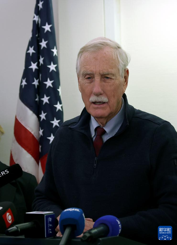 2月9日,在丹麥自治領(lǐng)地格陵蘭島首府努克,美國(guó)緬因州獨(dú)立參議員安格斯·金出席新聞發(fā)布會(huì)。新華社記者 李穎 攝