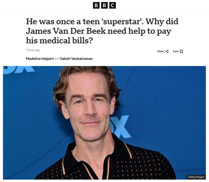 中新網(wǎng)2月14日電 據(jù)英國廣播公司(BBC)報(bào)道,美國演員詹姆斯·范德比克在20世紀(jì)90年代和21世紀(jì)初成名。憑借在青春成長劇《戀愛時(shí)代》中的表現(xiàn),范德比克走上了一些最熱門的紅毯,甚至被稱為“新晉超級(jí)巨星”。但晚年遭遇不幸時(shí),他的家人不得不依靠朋友和粉絲的善意來獲得經(jīng)濟(jì)援助,這不僅揭示了許多演員岌岌可危的經(jīng)濟(jì)狀況,也揭示了數(shù)百萬普通美國人為支付醫(yī)療費(fèi)用而苦苦掙扎的困境。