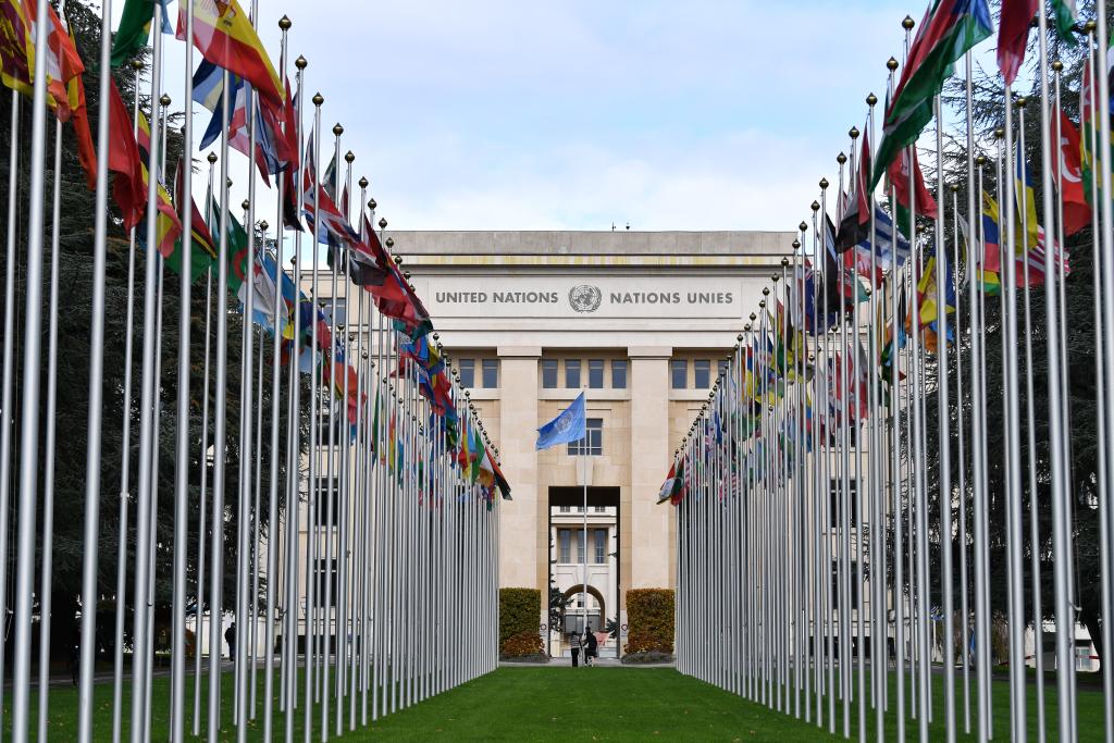 這是2025年10月24日在瑞士日內瓦拍攝的萬國宮。新華社記者連漪攝