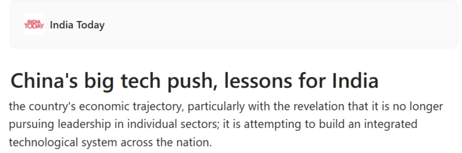 “十五五”規(guī)劃綱要對科技領(lǐng)域的最新部署,為世界提供了怎樣的發(fā)展范本?文章以印度為例稱,印度下階段的科技戰(zhàn)略必須從“部門性任務(wù)”躍升為“系統(tǒng)性能力”,讓前沿科技成為印度在生產(chǎn)力、治理與創(chuàng)新方面的核心驅(qū)動力。