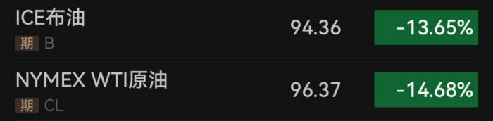 伴隨股市大漲,國際油價、貴金屬價格也出現(xiàn)大幅波動。國際市場原油價格“高臺跳水”,截至8日13:00,WTI原油期貨盤中一度跌幅超過19%,跌破每桶100美元關口,達91.05美元/桶。布倫特原油期貨一度跌超16%,達最低91.7美元/桶。