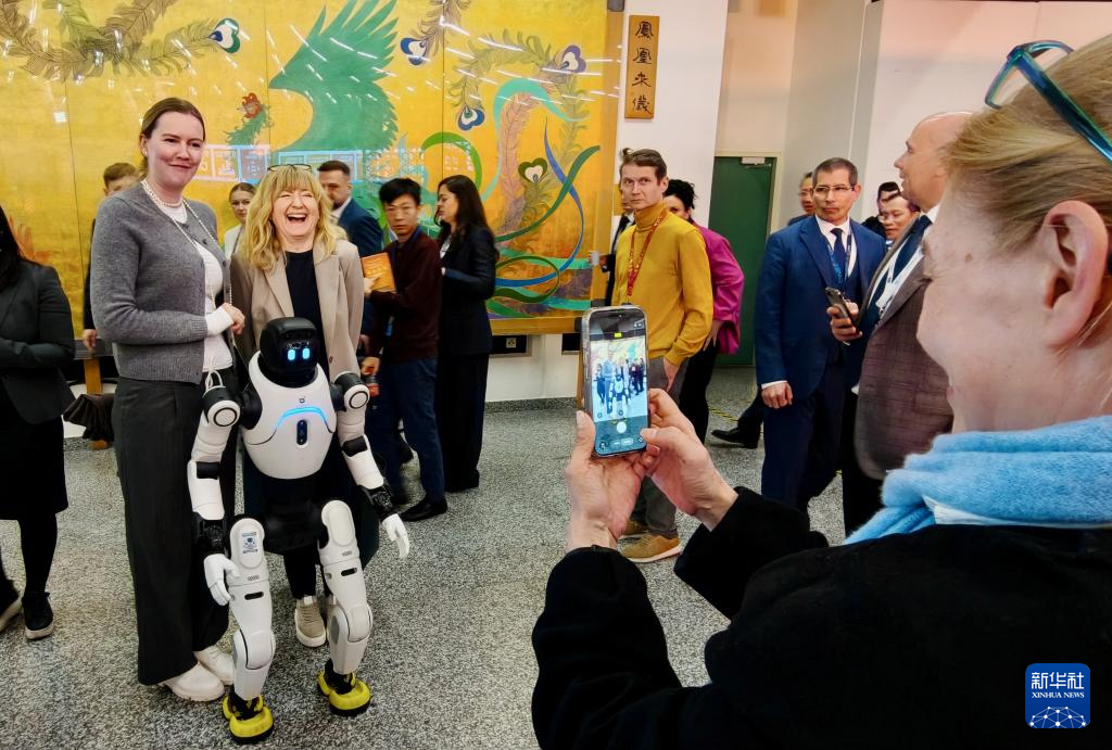 4月13日,在奧地利維也納國(guó)際中心,人們?cè)谝浴疤统錆M——在維也納聯(lián)合國(guó)遇見(jiàn)故宮”為主題的2026年維也納聯(lián)合國(guó)中文日系列活動(dòng)上與機(jī)器人合影。 新華社發(fā)(王宙攝)