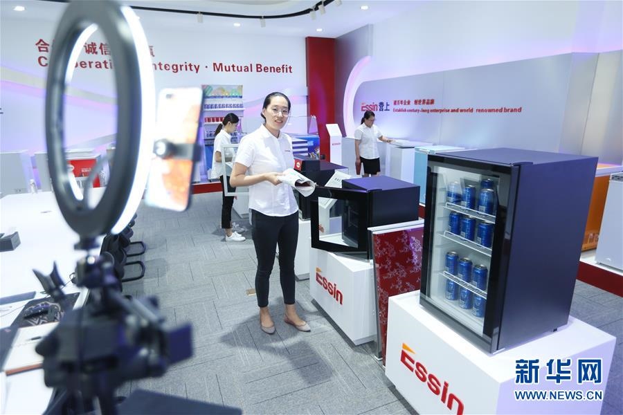 6月15日,在青島營(yíng)上電器有限公司,營(yíng)銷(xiāo)人員通過(guò)廣交會(huì)直播平臺(tái)推介出口到海外市場(chǎng)的冰箱。當(dāng)日,第127屆廣交會(huì)拉開(kāi)帷幕。這是我國(guó)首次將廣交會(huì)整體性“搬上云端”。本屆廣交會(huì)會(huì)期10天,保持24小時(shí)不間斷,按16大類(lèi)商品設(shè)置50個(gè)展區(qū),180萬(wàn)件展品同期上線(xiàn)展示。新華社發(fā)(梁孝鵬攝)