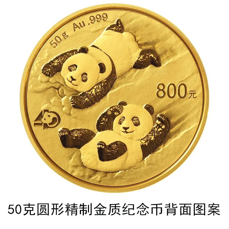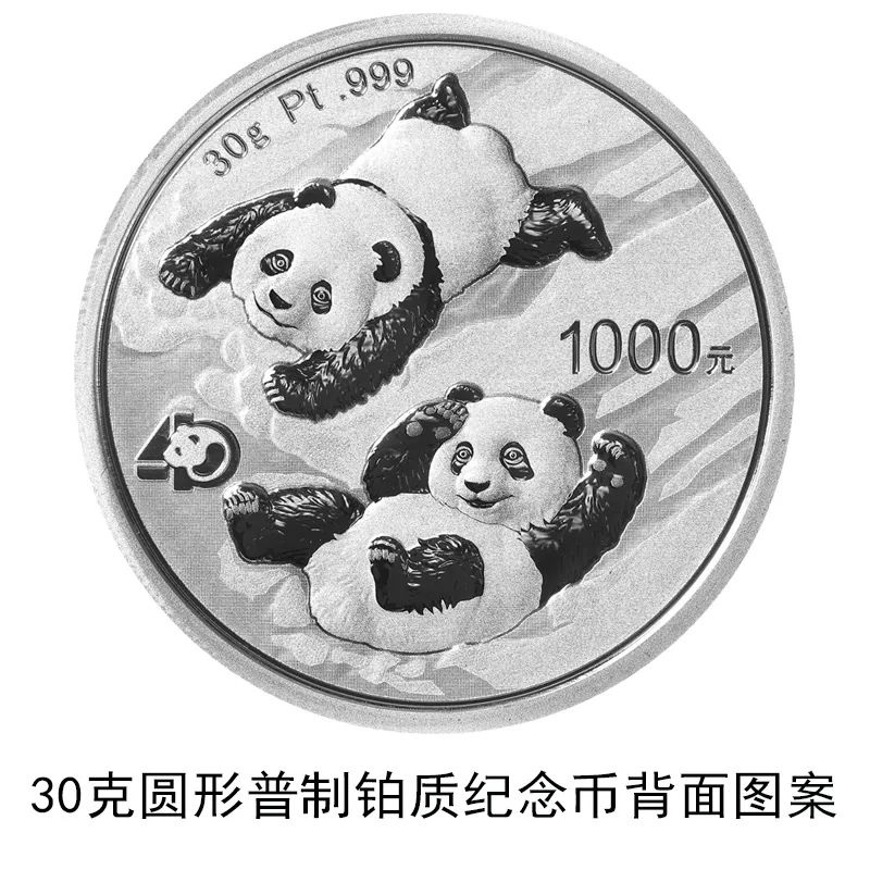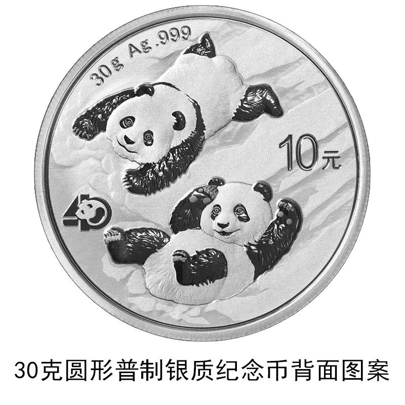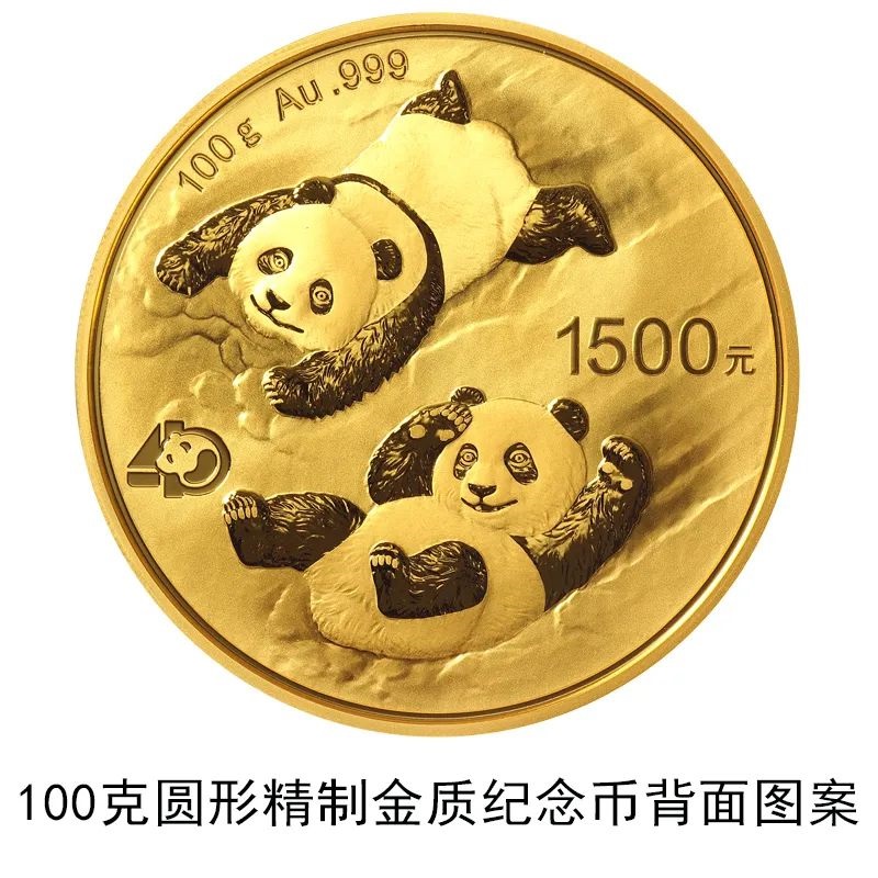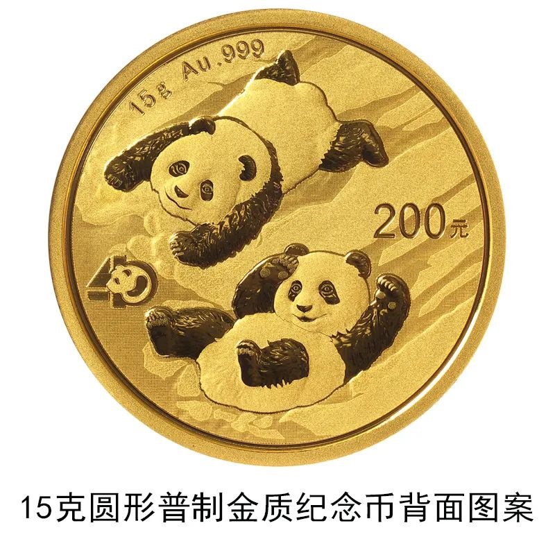 該套貴金屬紀(jì)念幣正面圖案均為北京天壇祈年殿,并刊國(guó)名、年號(hào);背面圖案均為大熊貓滑雪嬉戲場(chǎng)景,輔以“熊貓金幣發(fā)行40周年標(biāo)識(shí)”元素,并刊面額、重量及成色。