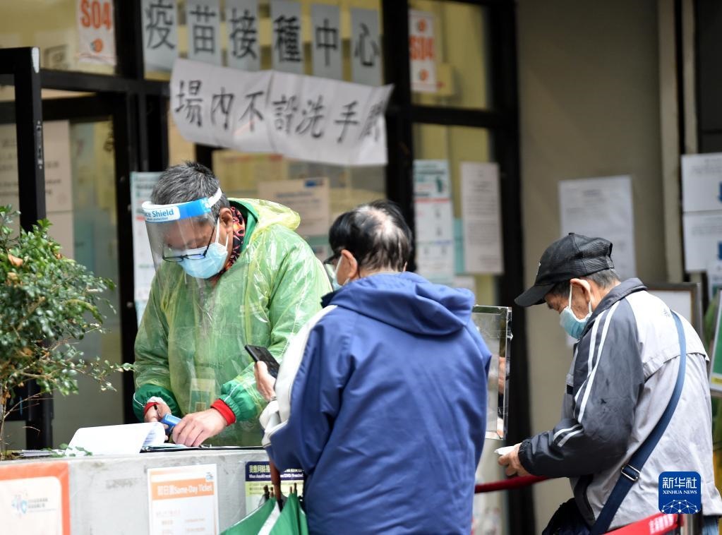 2月22日,在香港佐敦疫苗接種中心站,工作人員為前來接種疫苗的市民登記。新華社記者 盧炳輝 攝
