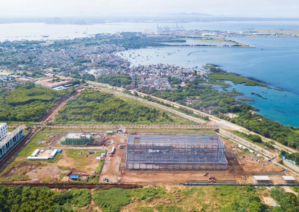 圖為10月2日在海南洋浦經(jīng)濟開發(fā)區(qū)拍攝的建設(shè)中的申能電氣風電新能源裝備產(chǎn)業(yè)項目(無人機照片)。新華社記者蒲曉旭 攝