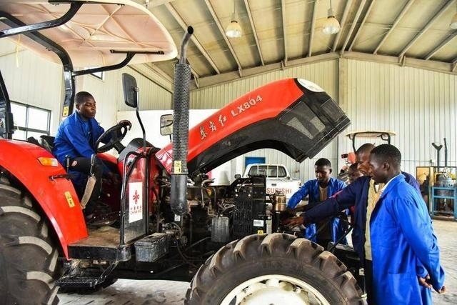中方援建的喀麥隆亞巴西農(nóng)業(yè)職業(yè)技術(shù)中學(xué)里,學(xué)生們在上拖拉機(jī)實踐課。