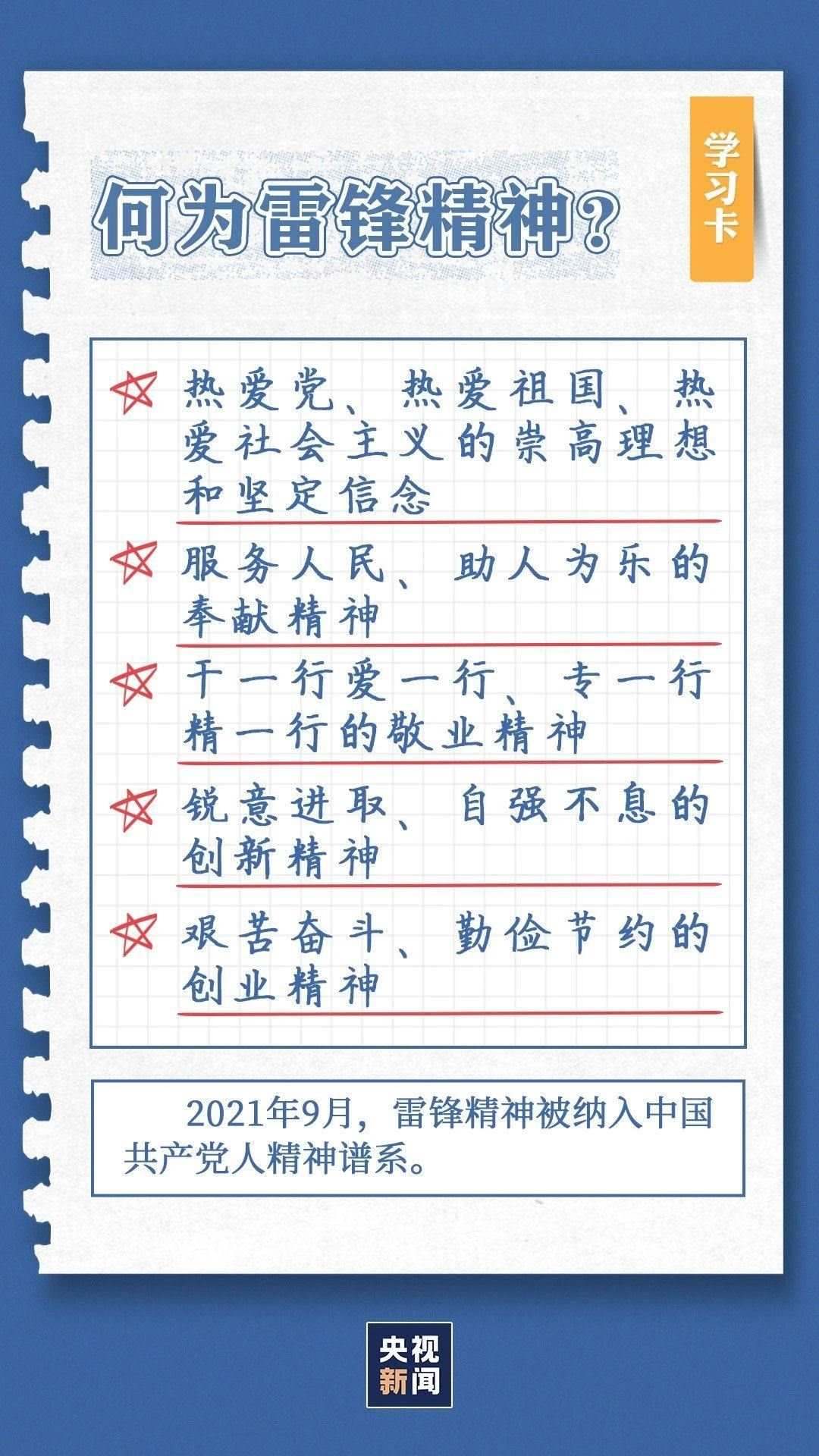 中共中央總書(shū)記、國(guó)家主席、中央軍委主席習(xí)近平近日作出重要指示指出,今年是毛澤東等老一輩革命家為雷鋒同志題詞60周年。60年來(lái),學(xué)雷鋒活動(dòng)在全國(guó)持續(xù)深入開(kāi)展,雷鋒的名字家喻戶曉,雷鋒的事跡深入人心,雷鋒精神滋養(yǎng)著一代代中華兒女的心靈。實(shí)踐證明,無(wú)論時(shí)代如何變遷,雷鋒精神永不過(guò)時(shí)。在新時(shí)代新征程上,如何弘揚(yáng)雷鋒精神?點(diǎn)擊學(xué)習(xí)卡↓