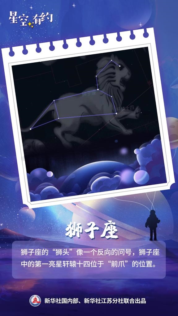 王科超說,獅子座的“獅頭”像一個反向的問號,“春季大三角”中的五帝座一處于獅子座的“獅尾”,而獅子座中的第一亮星軒轅十四則位于“前爪”的位置。獅子座的觀測可以從3月持續(xù)至8月,感興趣的公眾可以一觀。