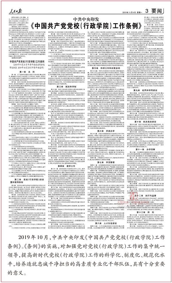黨校事業(yè)是黨的事業(yè)的重要組成部分。從中央到地方建立黨校體系,專(zhuān)門(mén)教育培訓(xùn)干部,是我們黨的一大政治優(yōu)勢(shì)。黨的十八大以來(lái),習(xí)近平總書(shū)記高度重視黨校工作。從為黨內(nèi)“關(guān)鍵少數(shù)”講授“開(kāi)班第一課”,與縣委書(shū)記研修班學(xué)員座談交流,到連續(xù)6次出席中青年干部培訓(xùn)班開(kāi)班式并發(fā)表重要講話(huà);從出席全國(guó)黨校工作會(huì)議并發(fā)表重要講話(huà),指引做好新形勢(shì)下的黨校工作,到部署深化黨和國(guó)家機(jī)構(gòu)改革,組建新的中央黨校(國(guó)家行政學(xué)院),制定、實(shí)施《中國(guó)共產(chǎn)黨黨校(行政學(xué)院)工作條例》,習(xí)近平總書(shū)記對(duì)黨校工作傾注了大量心血。在總書(shū)記親切關(guān)懷下,中央黨校和全國(guó)各級(jí)黨校牢記“黨校姓黨”這個(gè)立校之本,不斷提高辦學(xué)質(zhì)量和水平,在為黨育才、為黨獻(xiàn)策上作出了新的貢獻(xiàn)。