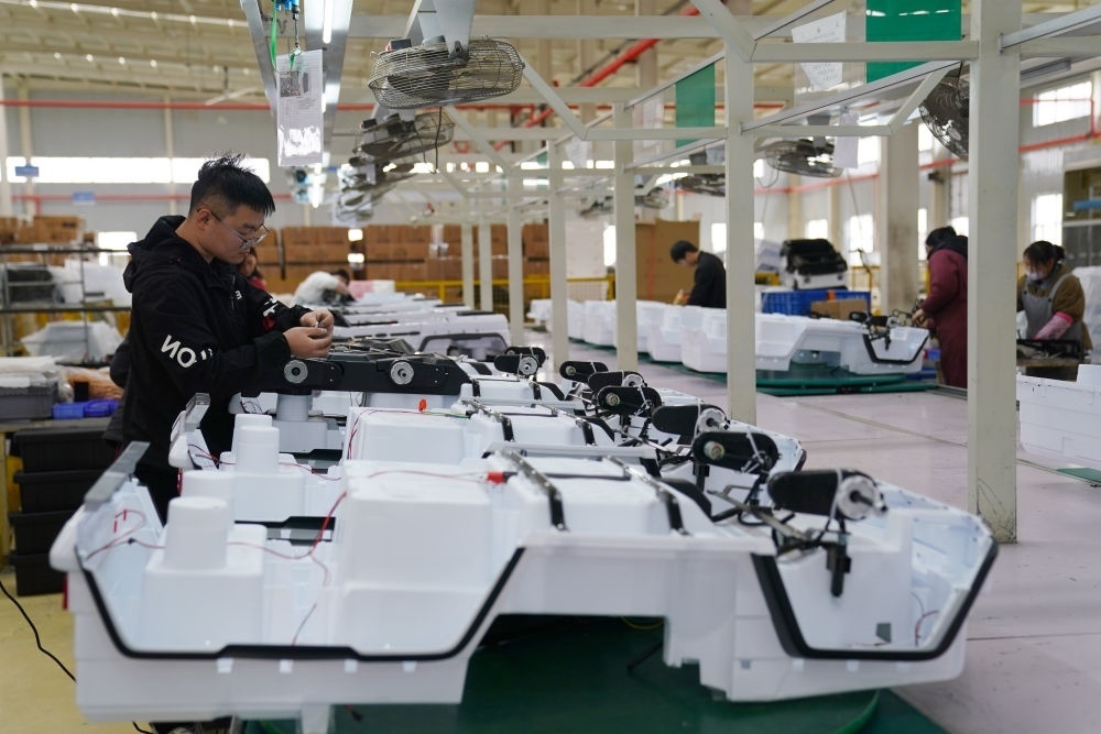 3月16日,工人在河北省邢臺(tái)經(jīng)濟(jì)開發(fā)區(qū)一家外貿(mào)企業(yè)生產(chǎn)車間組裝童車產(chǎn)品。新華社記者 駱學(xué)峰 攝