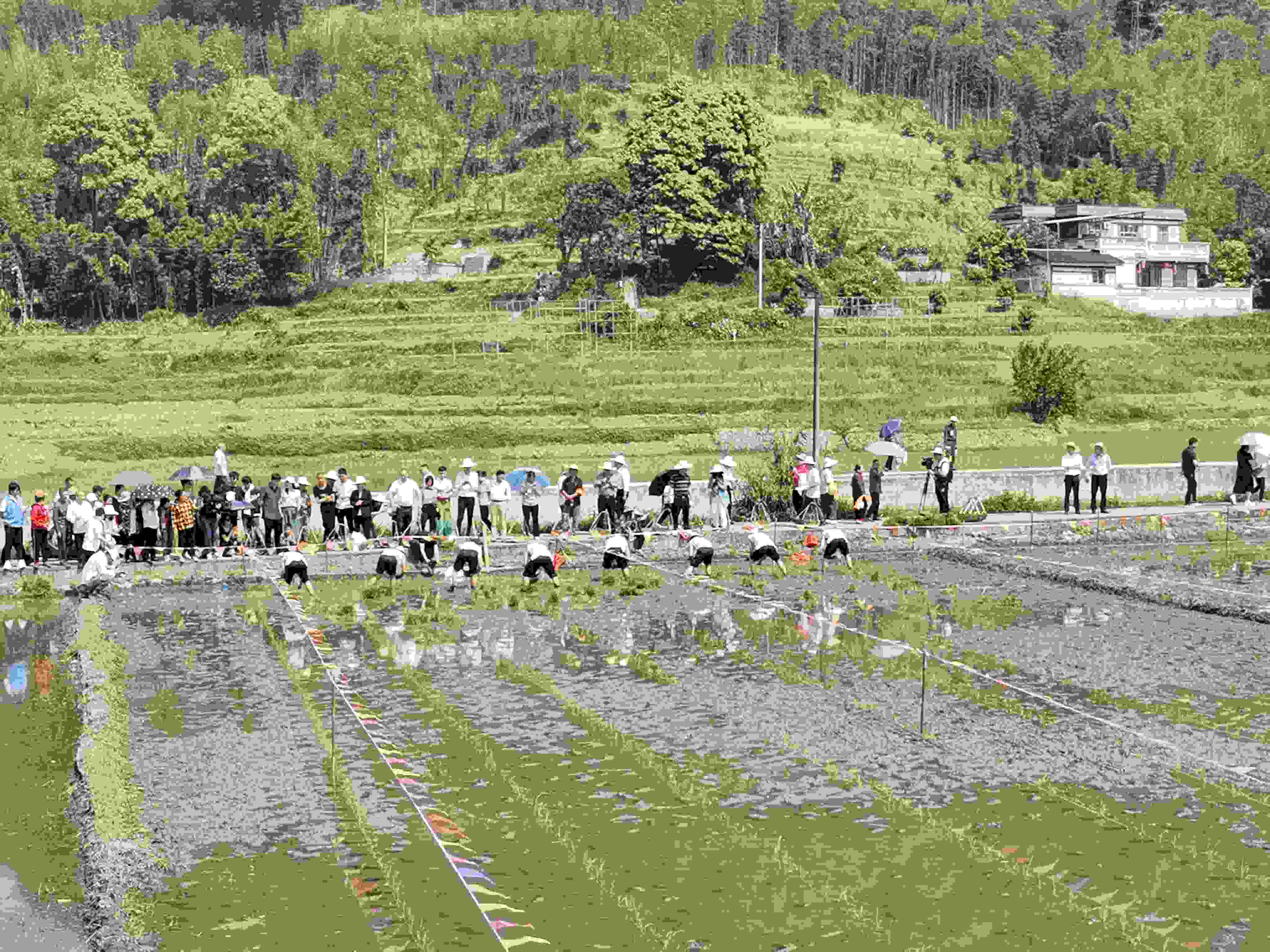隨著一聲“開(kāi)秧門嘍”,插秧比賽正式舉行。來(lái)自僰王山鎮(zhèn)各村社插秧能手,不停拋秧、插秧,用汗水和行動(dòng)播種下新年的希望。來(lái)自重慶、成都、宜賓等地的部分孩子也在家長(zhǎng)帶領(lǐng)下到指定田塊體驗(yàn)插秧活動(dòng),增強(qiáng)和土地的親近感。(資料來(lái)源:中共興文縣委宣傳部)