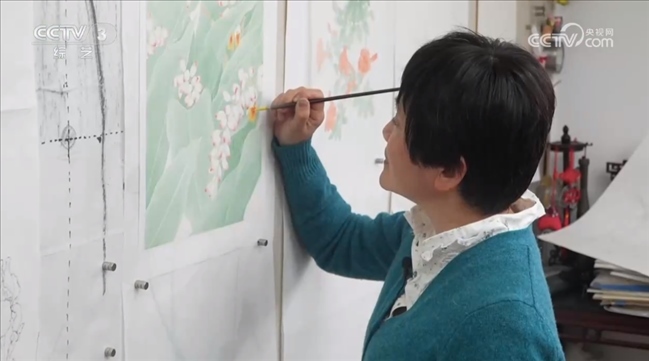 工筆花鳥畫家 上海市文史研究館館員 萬(wàn)芾:我這個(gè)老師一輩傳給我們,我們?cè)傧耠A梯一樣,一代一代承接傳承下去,就有傳承,而且這種傳承,不是這種脫離了中國(guó)傳統(tǒng)繪畫的,我們始終有一根主脈抓得很牢