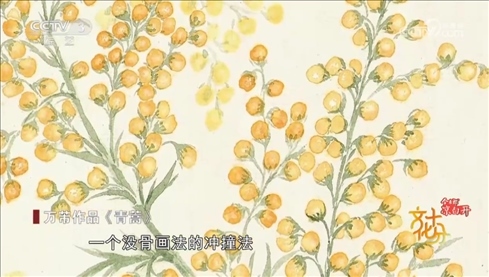 工筆花鳥畫家 上海市文史研究館館員 萬(wàn)芾:我們看看這幅,這幅應(yīng)該我們很熟悉的一味中藥材就是人參,看了中藥這么美麗的花,這么有生命力的現(xiàn)象,是不是我們吃的時(shí)候也不苦了。