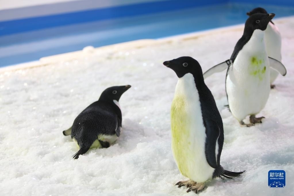 當(dāng)日,哈爾濱極地公園企鵝家族迎來新成員——10只阿德利企鵝,這是黑龍江省首次引進該品種企鵝。目前,哈爾濱極地公園已有阿德利企鵝、帽帶企鵝、王企鵝、巴布亞企鵝和斑嘴環(huán)企鵝五大品種。新華社記者 石楓 攝
