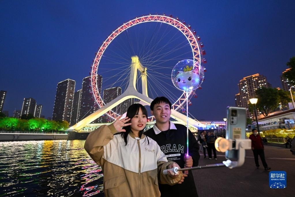 近日,天津市地標(biāo)景觀之一的“天津之眼”摩天輪完成整體更新改造,迎接即將到來的“五一”假期。此次提升改造更換了48個全新轎廂,包含12個內(nèi)設(shè)天屏和地屏的“智能科技”主題轎廂,用來播放天津文旅宣傳視頻,增強游客的觀景體驗感。新華社記者 孫凡越 攝