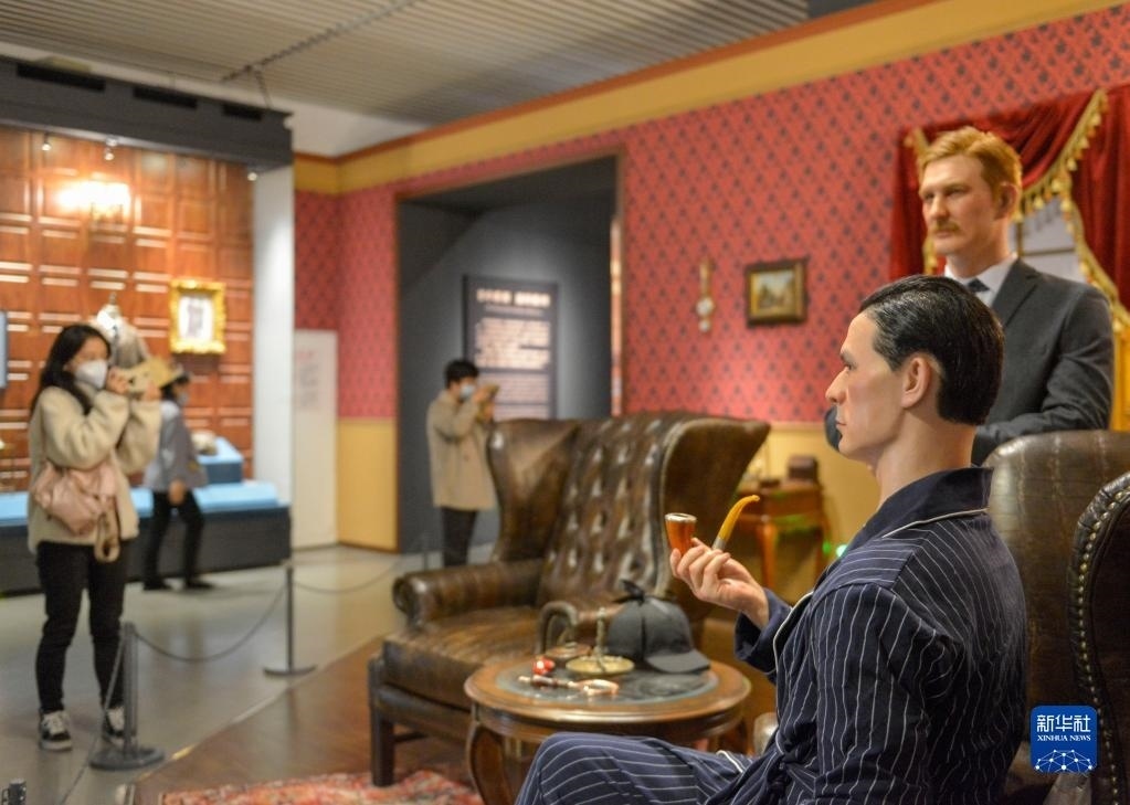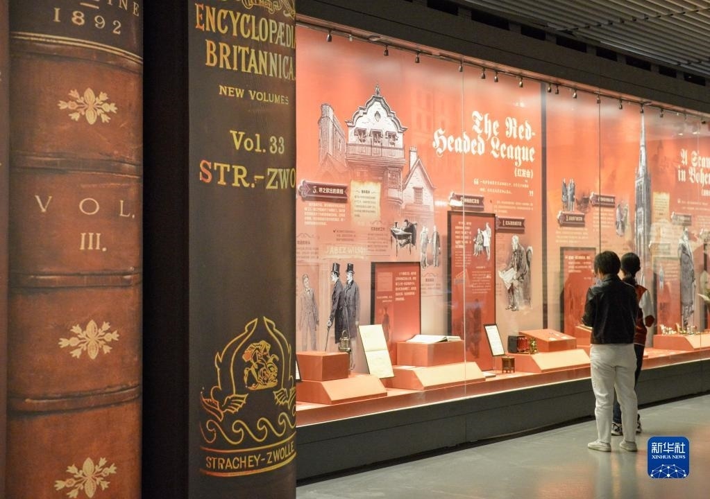 當(dāng)日,“Case Lab元世界——福爾摩斯大型沉浸式主題展”在國家圖書館(國家典籍博物館)開展。展覽展出了柯南·道爾《福爾摩斯探案集》的早期英文單行本、合集等作品,還包含福爾摩斯故事場景復(fù)原、12個(gè)經(jīng)典案件呈現(xiàn)、12個(gè)互動(dòng)展項(xiàng)等內(nèi)容,致力于帶給參觀者更沉浸的觀展感受和更真實(shí)的探案體驗(yàn)。展覽將持續(xù)到11月2日。新華社記者 郝建偉 攝