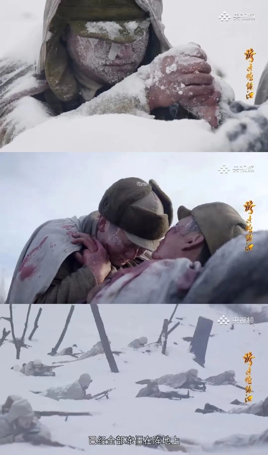 在朝鮮戰(zhàn)場(chǎng)上,志愿軍將士面對(duì)強(qiáng)大而兇狠的作戰(zhàn)對(duì)手,身處惡劣而殘酷的戰(zhàn)場(chǎng)環(huán)境,拋頭顱、灑熱血,譜寫(xiě)了驚天地、泣鬼神的雄壯史詩(shī)?!拔液孟牒纫豢跓崴薄拔覑?ài)我的親人和祖國(guó)”……忍饑受凍絕不退縮,《跨過(guò)鴨綠江》中的每一位英雄,都令敵人膽寒,讓天地動(dòng)容!