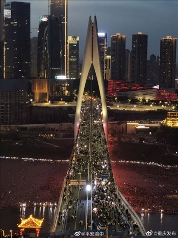 一直很寵粉的重慶又出手了:對(duì)千廝門(mén)大橋進(jìn)行封橋,專(zhuān)供游客打卡,橋上還安排上了各式各樣的小攤,煙火氣直接拉滿(mǎn)。