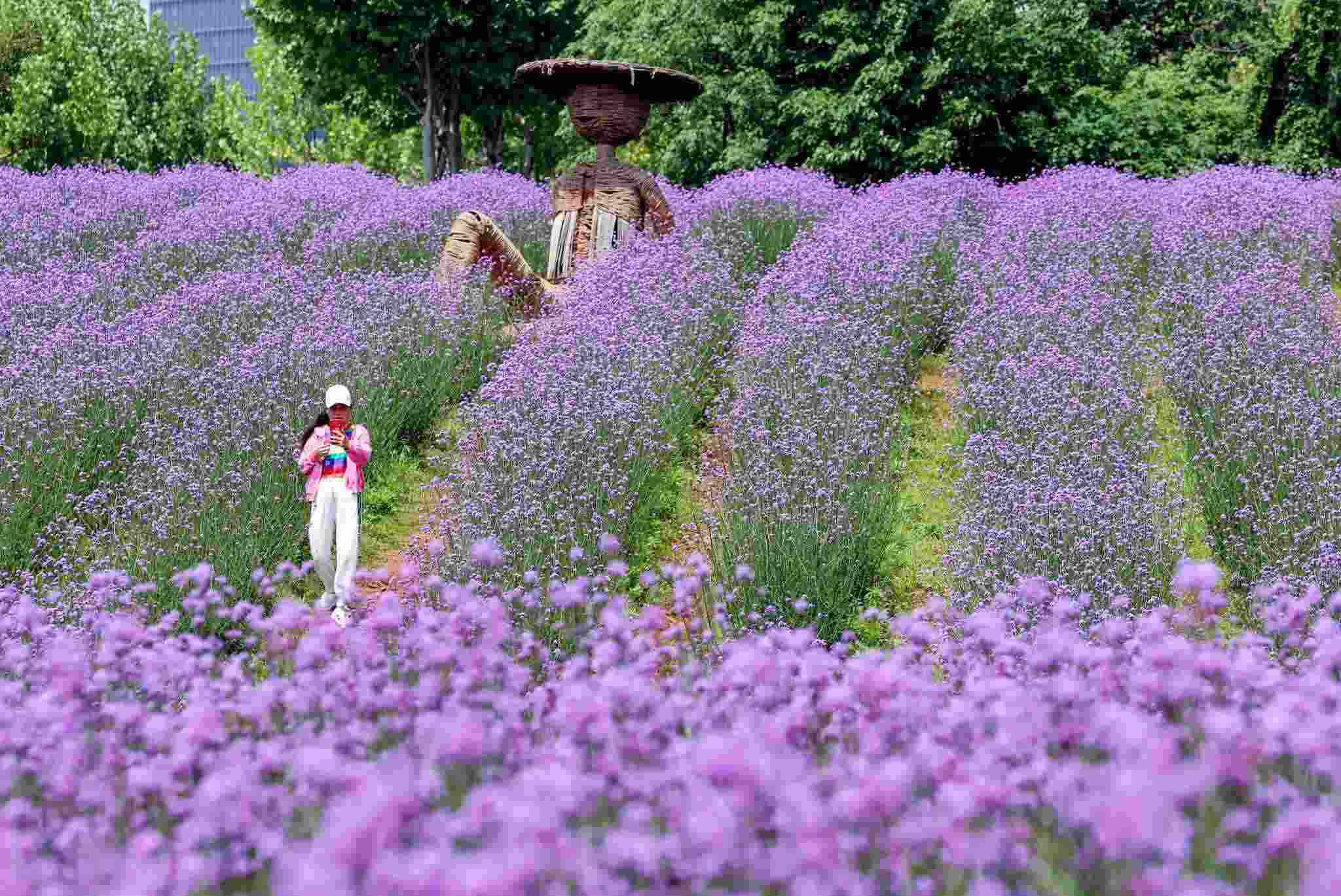 近日,湖北武漢光谷中央生態(tài)大走廊最北端的九峰一路,馬鞭草競(jìng)相綻放,吸引不少市民和游客來(lái)此賞花。視覺(jué)中國(guó)