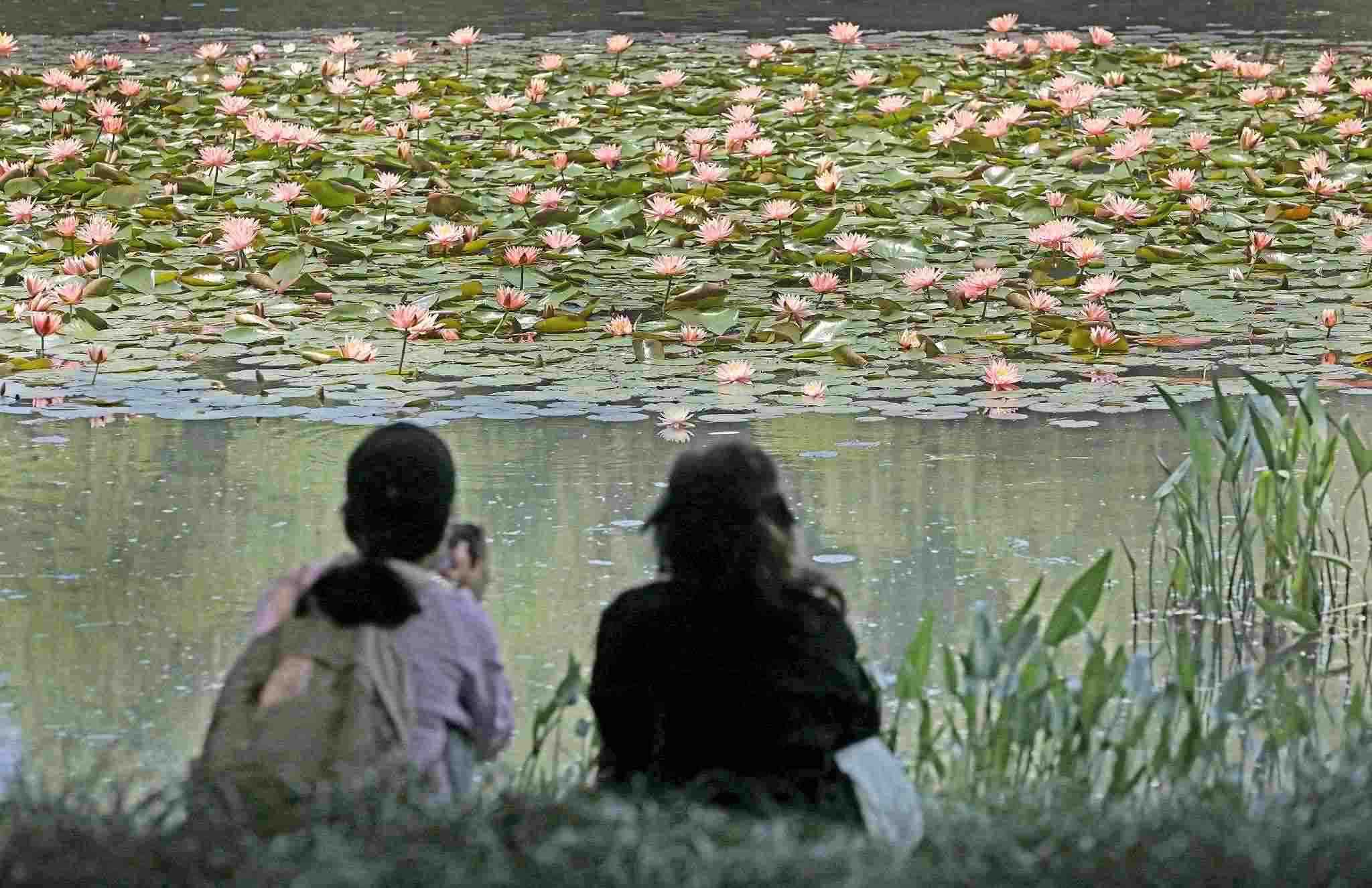 2023年5月9日,杭州,西湖龍泓澗景區(qū),各色睡蓮成片綻放,在水面上搖曳身姿,靜謐朦朧,夢幻唯美,恍若走進“莫奈花園”,吸引眾多市民游人前來賞花拍照。視覺中國