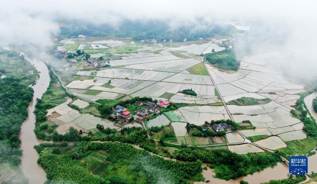 5月6日拍攝的湖南省資興市唐洞街道鏡塘村田園風(fēng)光(無人機(jī)照片)。