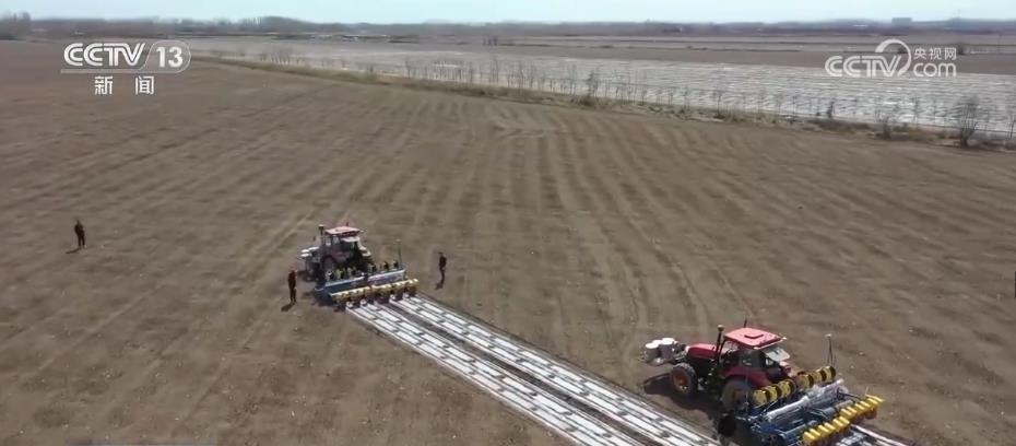 眼下,新疆瑪納斯縣65萬畝棉花全面開播。在文家莊村的棉田里,五臺(tái)裝有北斗導(dǎo)航系統(tǒng)的大馬力拖拉機(jī),正按照預(yù)先設(shè)定的播種線路,進(jìn)行精量播種。