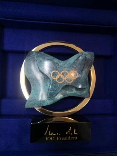 據(jù)介紹,該獎杯由被譽為“當(dāng)代米開朗基羅”的西班牙國寶級雕塑家Rosa Serra設(shè)計制作,基座配有現(xiàn)任國際奧委會主席巴赫的親筆簽名。該獎杯以在瑞士洛桑的國際奧委會總部大樓“奧林匹克之家”為原型設(shè)計,大樓為和平鴿造型,象征著和平與友誼,是奧林匹克運動傳遞的最重要信息之一。據(jù)悉,“奧林匹克之家”大樓于2019年6月23日國際奧林匹克日正式啟用。