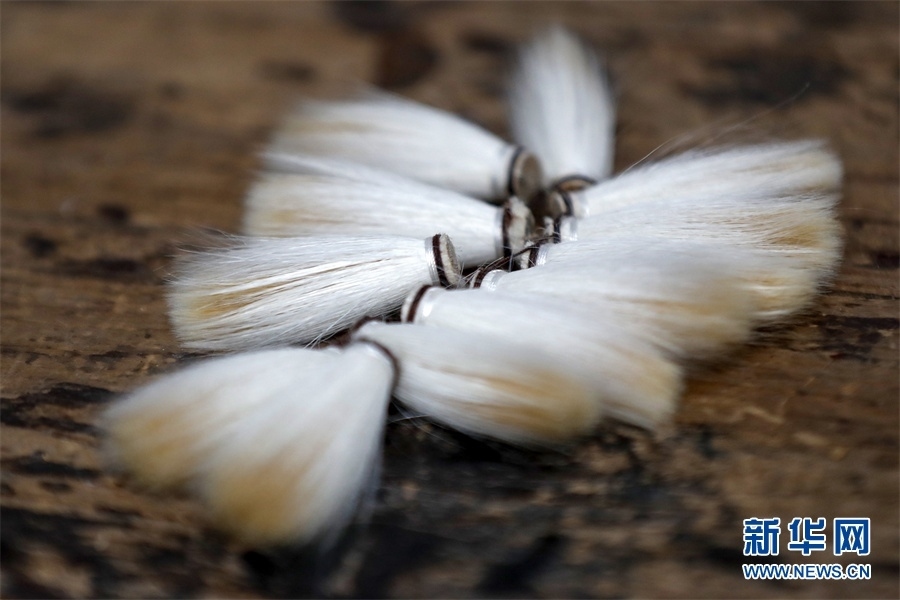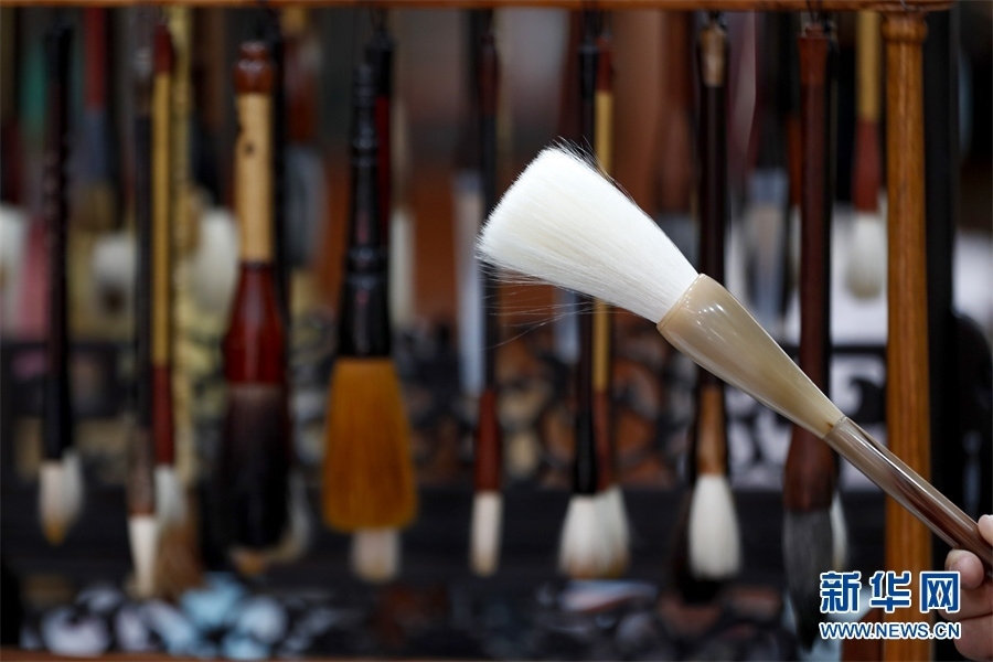 一支好的徽筆,不僅要保留傳統(tǒng)工藝,且要在原基礎(chǔ)上不斷創(chuàng)新、改良。楊文尤其重視書畫家對筆的使用反饋:“因為他們對用筆最挑剔,而且現(xiàn)代書畫家創(chuàng)作方式和作品不斷創(chuàng)新,對毛筆也有新的要求,他們提出的要求我總是盡力去滿足,也使得制筆技藝進(jìn)一步得到了提高?!? 新華網(wǎng)發(fā)(施亞磊 攝)