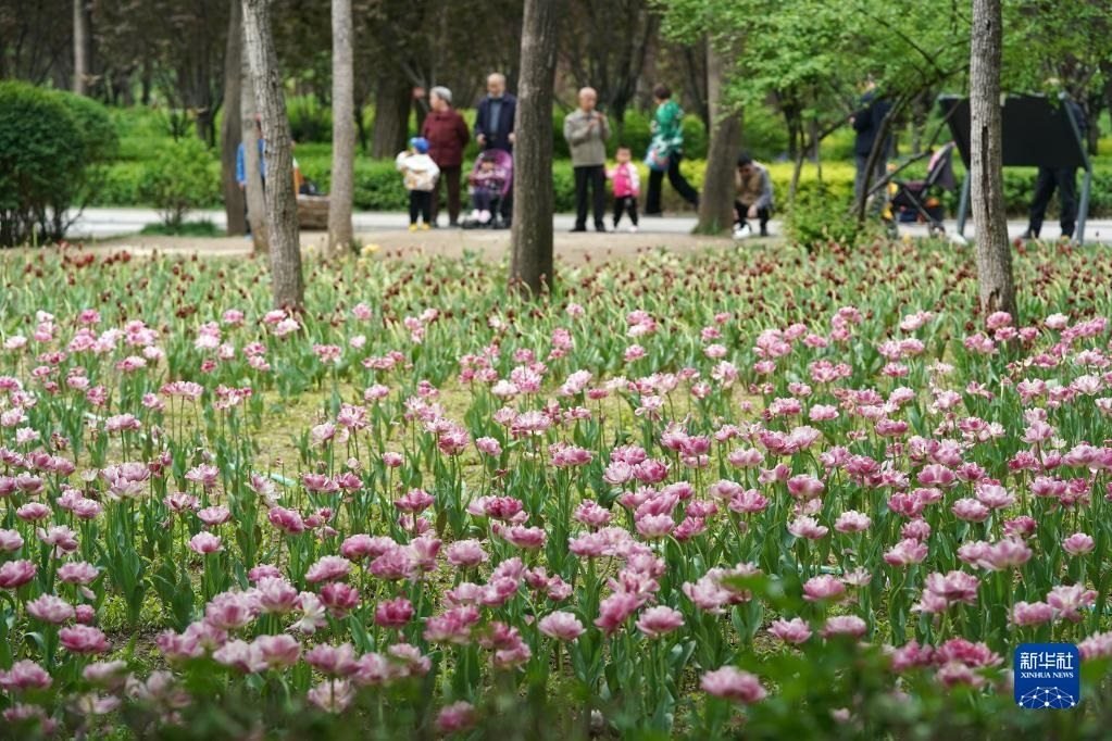 近日,山西省太原市迎澤公園內(nèi)各色郁金香競(jìng)相綻放,吸引游人前來觀花賞景。新華社記者 詹彥 攝
