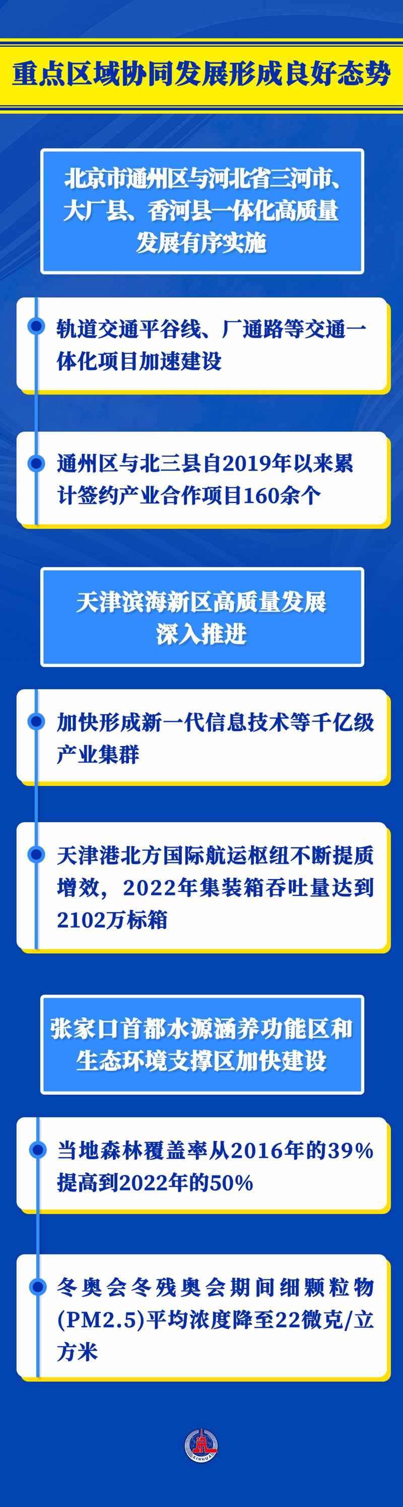 京津冀協(xié)同發(fā)展是一個系統(tǒng)工程。9年多來,三地攜手發(fā)力,重點區(qū)域協(xié)同發(fā)展步穩(wěn)蹄疾,交通、環(huán)境、產(chǎn)業(yè)、公共服務等重點領域建設不斷取得新突破。