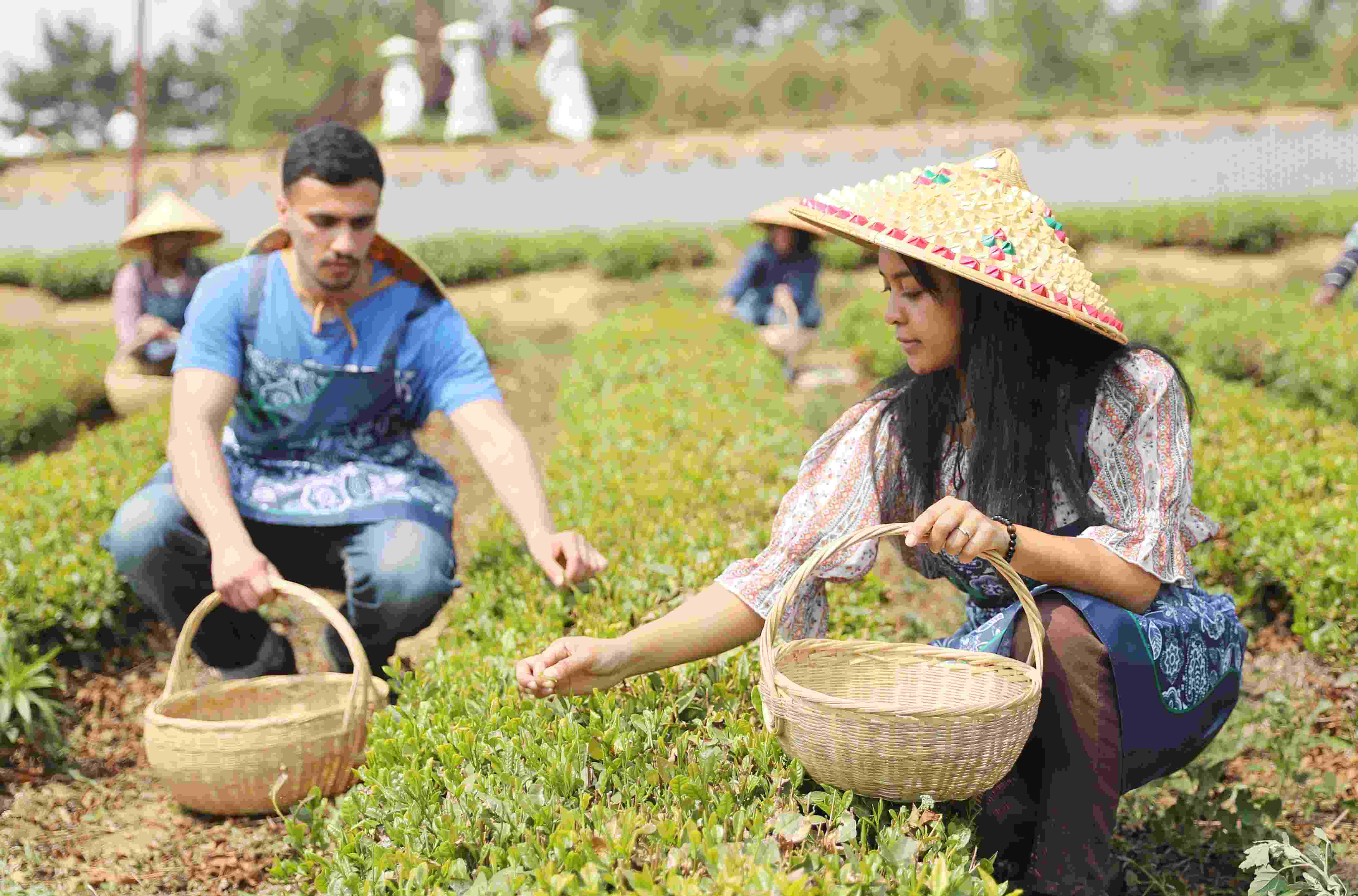 5月13日,在“國(guó)際茶日”來(lái)臨之際,山東科技大學(xué)數(shù)十名來(lái)自俄羅斯、巴基斯坦、斯里蘭卡等11個(gè)國(guó)家的留學(xué)生,來(lái)到青島西海岸新區(qū)海青鎮(zhèn)茶博園參加采茶、茶藝表演以及品茶等活動(dòng),體驗(yàn)中國(guó)傳統(tǒng)的茶文化,感受茶產(chǎn)業(yè)助力鄉(xiāng)村振興的特色發(fā)展之路。 張進(jìn)剛 攝