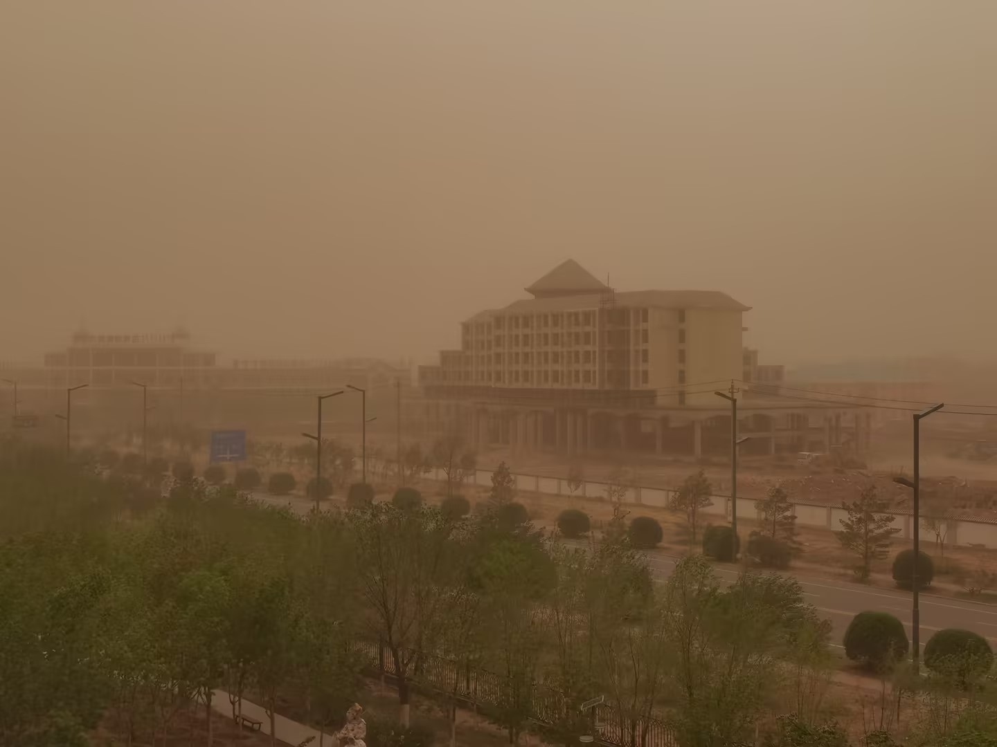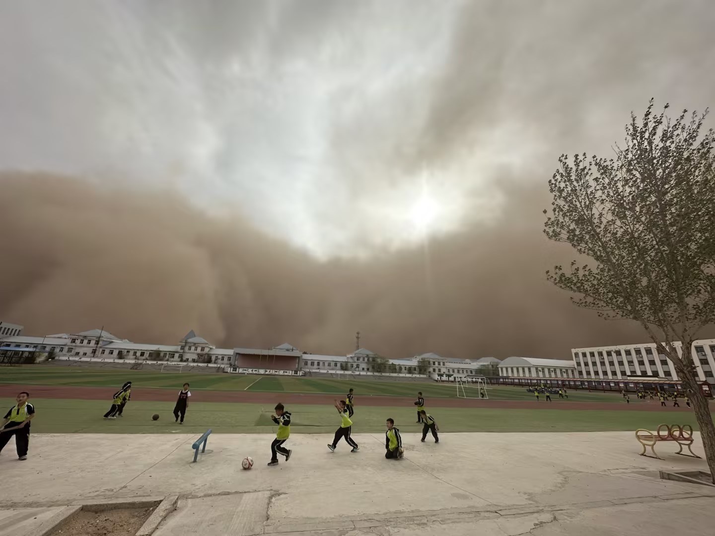 內(nèi)蒙古二連浩特出現(xiàn)強(qiáng)沙塵暴 沙墻滾滾而來