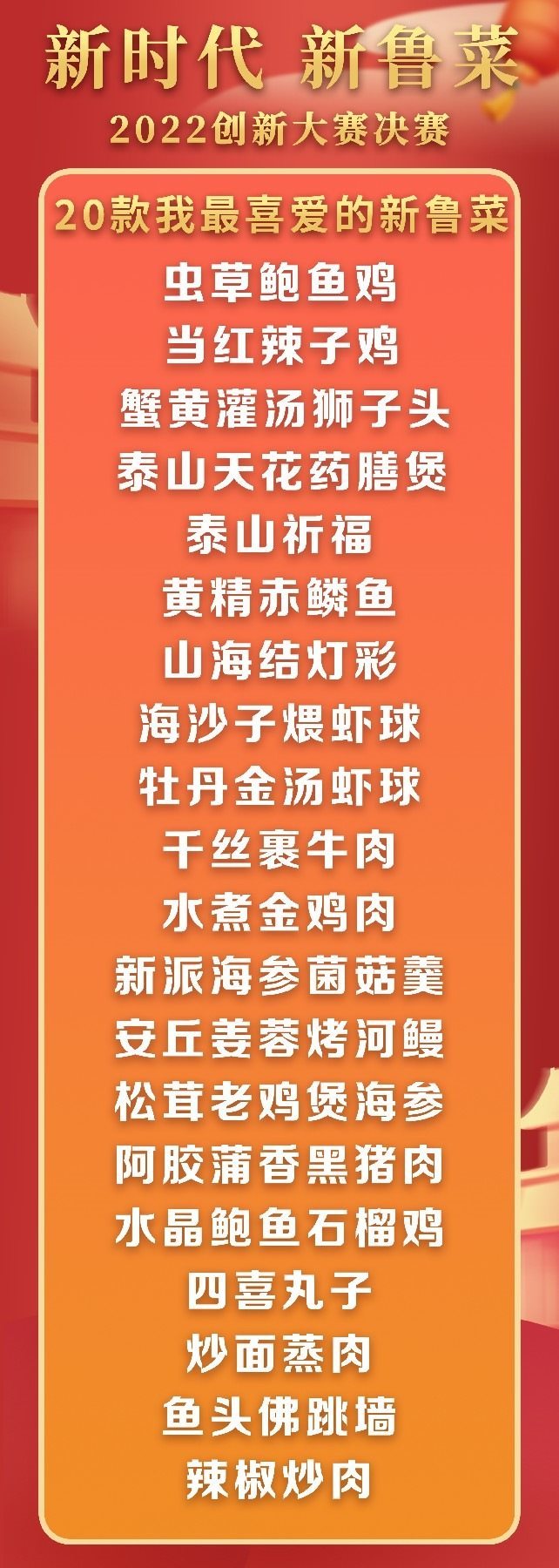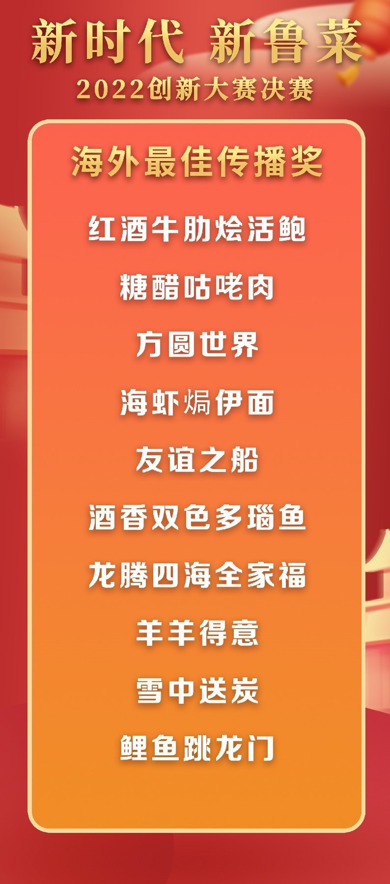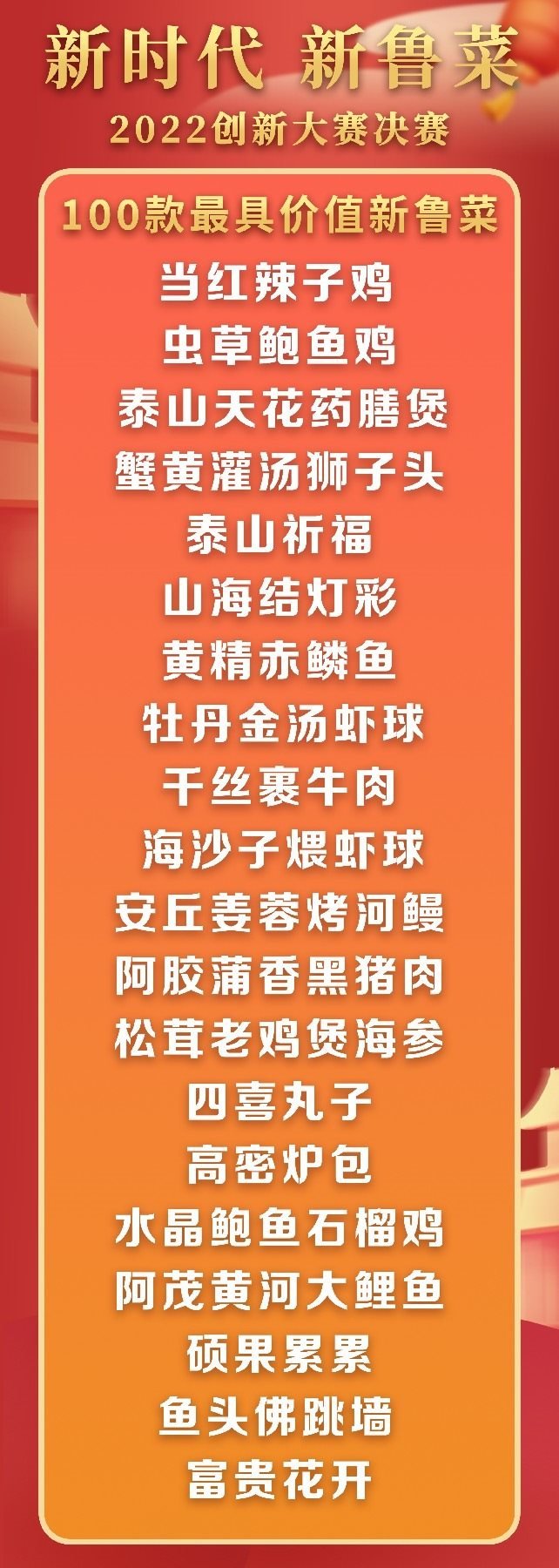 5月18日至19日,“新時代 新魯菜”2022創(chuàng)新大賽決賽暨頒獎活動在山東省濰坊市峽山區(qū)成功舉行,標(biāo)志著本屆大賽圓滿結(jié)束。經(jīng)過激烈角逐,大賽最終頒發(fā)出2022年度“十大魯菜創(chuàng)新菜品”、“20款我最喜愛的新魯菜”、“100款最具價值新魯菜”、“十大創(chuàng)新面點”、“預(yù)制菜轉(zhuǎn)化創(chuàng)新獎”和“海外最佳傳播獎”等獎項。此外,大賽組委會還頒發(fā)了“最佳組織獎”、“融媒貢獻(xiàn)獎”和“特殊貢獻(xiàn)獎”等獎項。