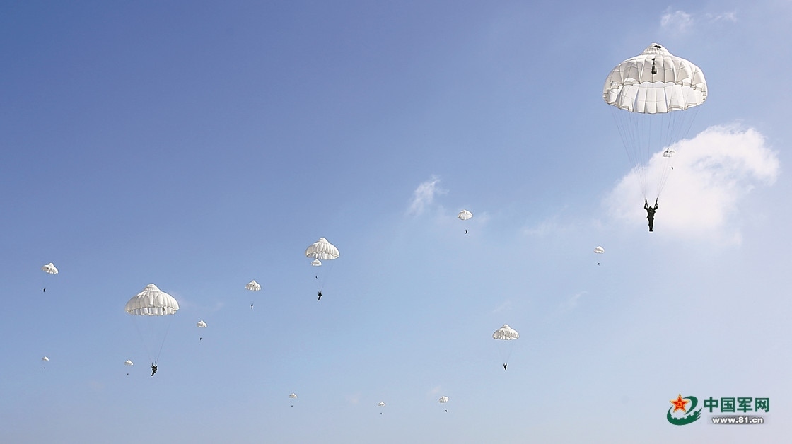 空降兵某旅組織跳傘訓練 錘煉官兵傘降能力