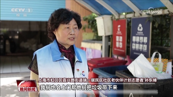 上海市虹口區(qū)嘉興路街道瑞一居民區(qū)社區(qū)老伙伴計(jì)劃志愿者 孫東娣:就是有些老人腿腳不方便,我們也會(huì)上門幫他們把垃圾帶下來(lái),也會(huì)跟他們講一些這方面的知識(shí)。