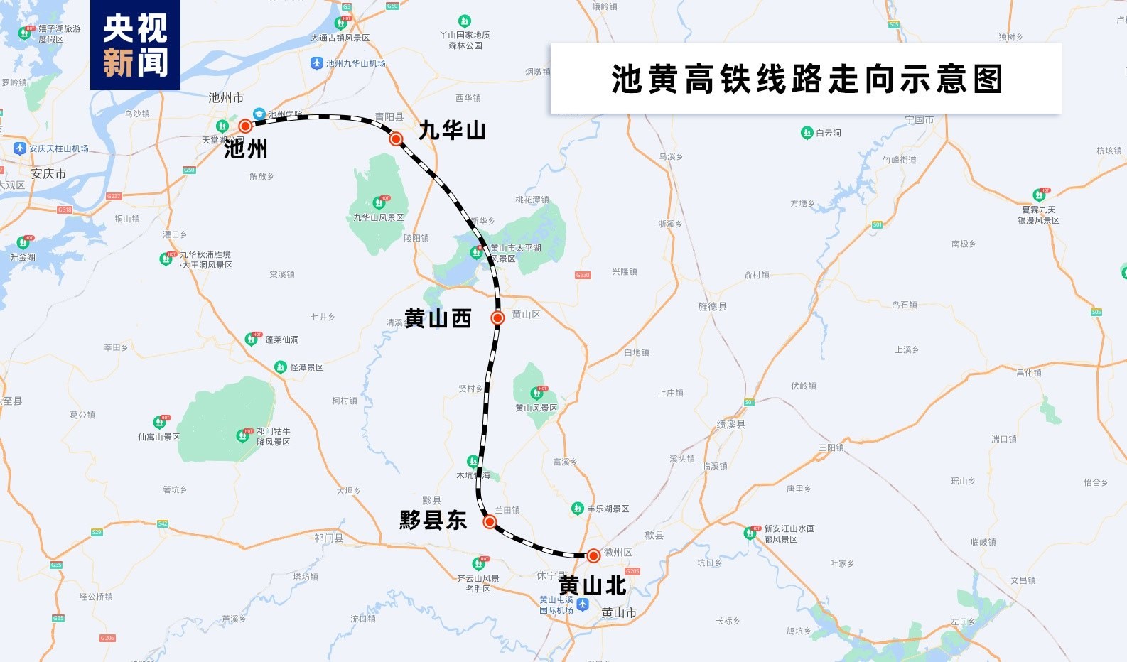 池黃高鐵是武漢至杭州高速鐵路通道的重要組成部分,線路起自池州站,至黟縣東站與在建昌景黃高鐵共站并線至黃山北站,新建正線長約125公里,設(shè)計時速350公里,全線隧道34座,隧道占比60.8%,總投資額183.7億元,全線設(shè)池州、九華山、黃山西、黟縣東、黃山北等5座車站。池黃高鐵通車后,將成為串聯(lián)起黃山、九華山的黃金旅游線路。