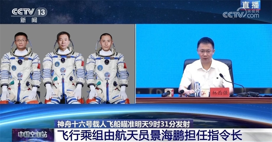 中國(guó)載人航天工程辦公室副主任、工程新聞發(fā)言人 林西強(qiáng):受任務(wù)總指揮部委托,由我向大家介紹神舟十六號(hào)載人飛行任務(wù)有關(guān)情況。經(jīng)總指揮部研究決定,瞄準(zhǔn)北京時(shí)間5月30日9時(shí)31分發(fā)射神舟十六號(hào)載人飛船,飛行乘組由航天員景海鵬、朱楊柱和桂海潮組成,景海鵬擔(dān)任指令長(zhǎng)。航天員景海鵬先后參加過(guò)神舟七號(hào)、九號(hào)、十一號(hào)載人飛行任務(wù),朱楊柱和桂海潮都是首次飛行。目前,執(zhí)行此次發(fā)射任務(wù)的長(zhǎng)征二號(hào)F遙十六火箭即將開(kāi)始加注推進(jìn)劑。