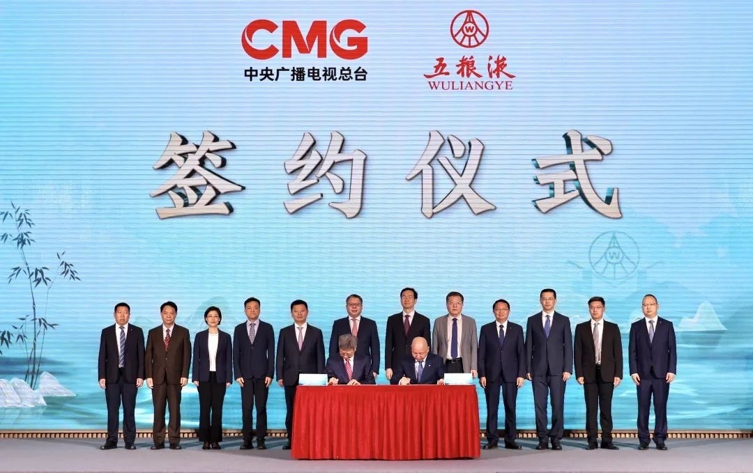 在彭健明、方存好、廖文彬、曾從欽以及總臺華語環(huán)球節(jié)目中心主任李欣雁,財經(jīng)節(jié)目中心副主任(主持工作)蔡俊,央視國際網(wǎng)絡(luò)有限公司董事長、央視頻融媒體發(fā)展有限公司總經(jīng)理過彤,四川總站副站長(主持工作)樊承志,四川總站副召集人鄭直,宜賓市副市長羅春濤,五糧液集團(tuán)(股份)公司黨委副書記肖浩,五糧液股份公司總經(jīng)理助理、五糧液品牌事業(yè)部總經(jīng)理黃太國的共同見證下,總臺總經(jīng)理室副召集人徐立軍與五糧液股份公司副總經(jīng)理劉洋現(xiàn)場簽署了品牌建設(shè)戰(zhàn)略合作協(xié)議。