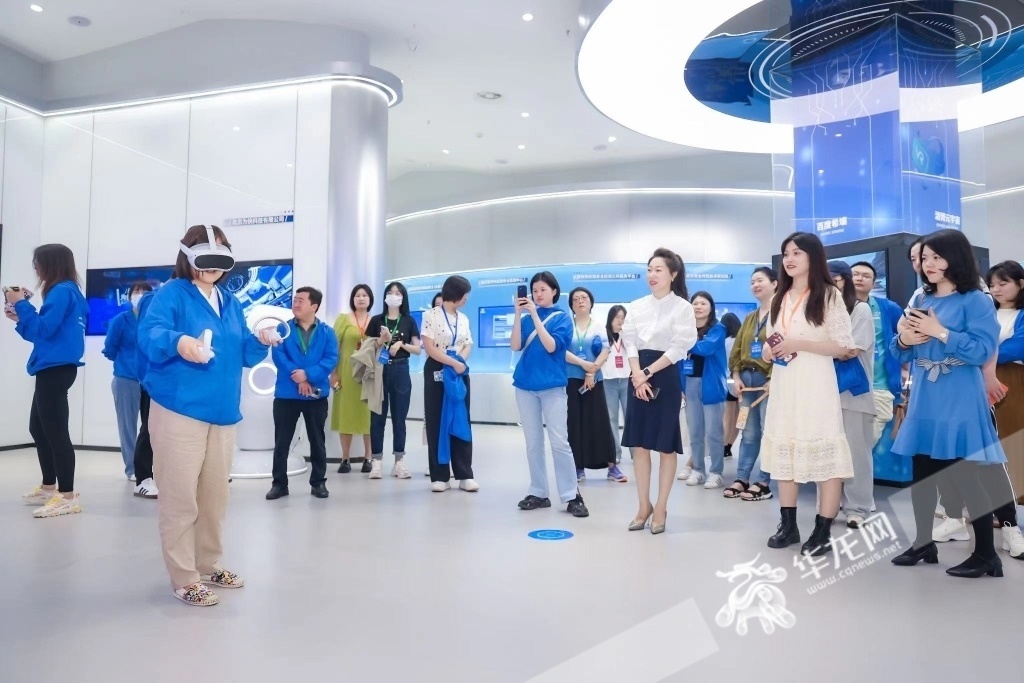記者們前往玉泉湖數(shù)字文旅產業(yè)城數(shù)字經濟展示中心。華龍網-新重慶客戶端 歐武夷 攝