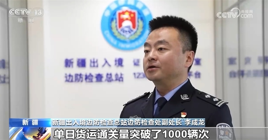 新疆出入境邊防檢查總站邊防檢查處副處長 李成龍:今年以來,霍爾果斯、阿拉山口等9個公路口岸通關(guān)量接連突破了歷史峰值,特別是霍爾果斯公路口岸,單日貨運通關(guān)量突破了1000輛次。