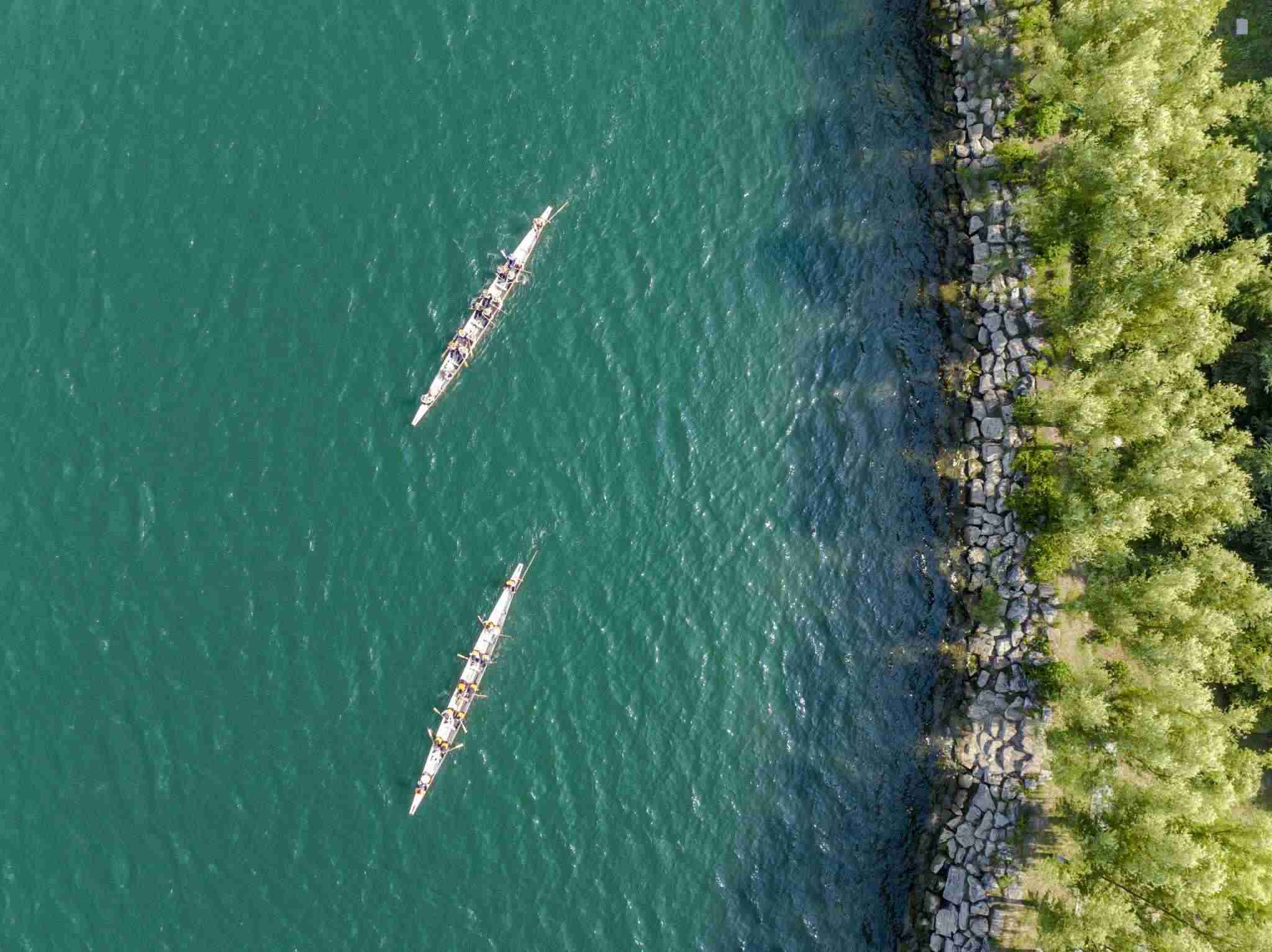2023年6月8日,江蘇連云港,東海縣西雙湖風景區(qū),多支龍舟隊在西雙湖水域進行訓練,積極備戰(zhàn)端午龍舟賽。視覺中國