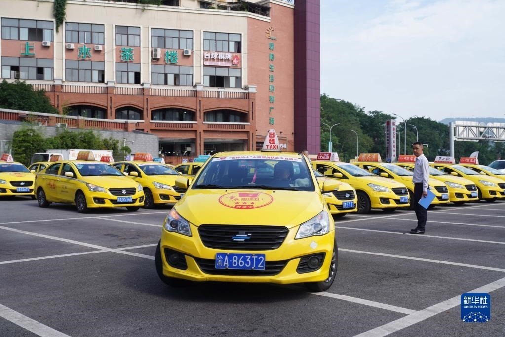 當日,在重慶公運集團北碚分公司停車場,當?shù)亍袄卒h的士”志愿服務隊高考直通車集結出發(fā)。高考期間,考生可憑準考證免費搭乘愛心送考車前往轄區(qū)各考點,也可以通過公布的電話進行預約乘坐。新華社發(fā)(秦廷富 攝)