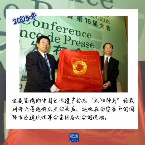 同年10月,“太陽(yáng)神鳥(niǎo)”圖案的蜀繡作品搭乘“神舟六號(hào)”遨游太空,真正實(shí)現(xiàn)了“上天”!