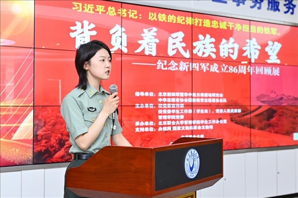 為深入學(xué)習(xí)貫徹習(xí)近平新時代中國特色社會主義思想主題教育,落實習(xí)近平加強(qiáng)全民國防教育的重要指示精神,弘揚愛國主義精神、增強(qiáng)全民國防意識,推動全民國防教育進(jìn)校園,深化學(xué)?!按笏颊n”建設(shè),6月9日,由北京新四軍暨華中抗日根據(jù)地研究會、中華志愿者協(xié)會國防教育志愿服務(wù)總隊指導(dǎo),北京聯(lián)合大學(xué)黨委學(xué)生工作部(學(xué)生處)、黨委人民武裝部、黨委宣傳部、北京聯(lián)合大學(xué)新時代文明實踐中心建設(shè)規(guī)劃研究所、管理學(xué)院黨委共同主辦,管理學(xué)院學(xué)生工作辦公室承辦的“背負(fù)民族希望——紀(jì)念新四軍成立86周年回顧展”大會在北四環(huán)校區(qū)學(xué)生事務(wù)大廳舉行。