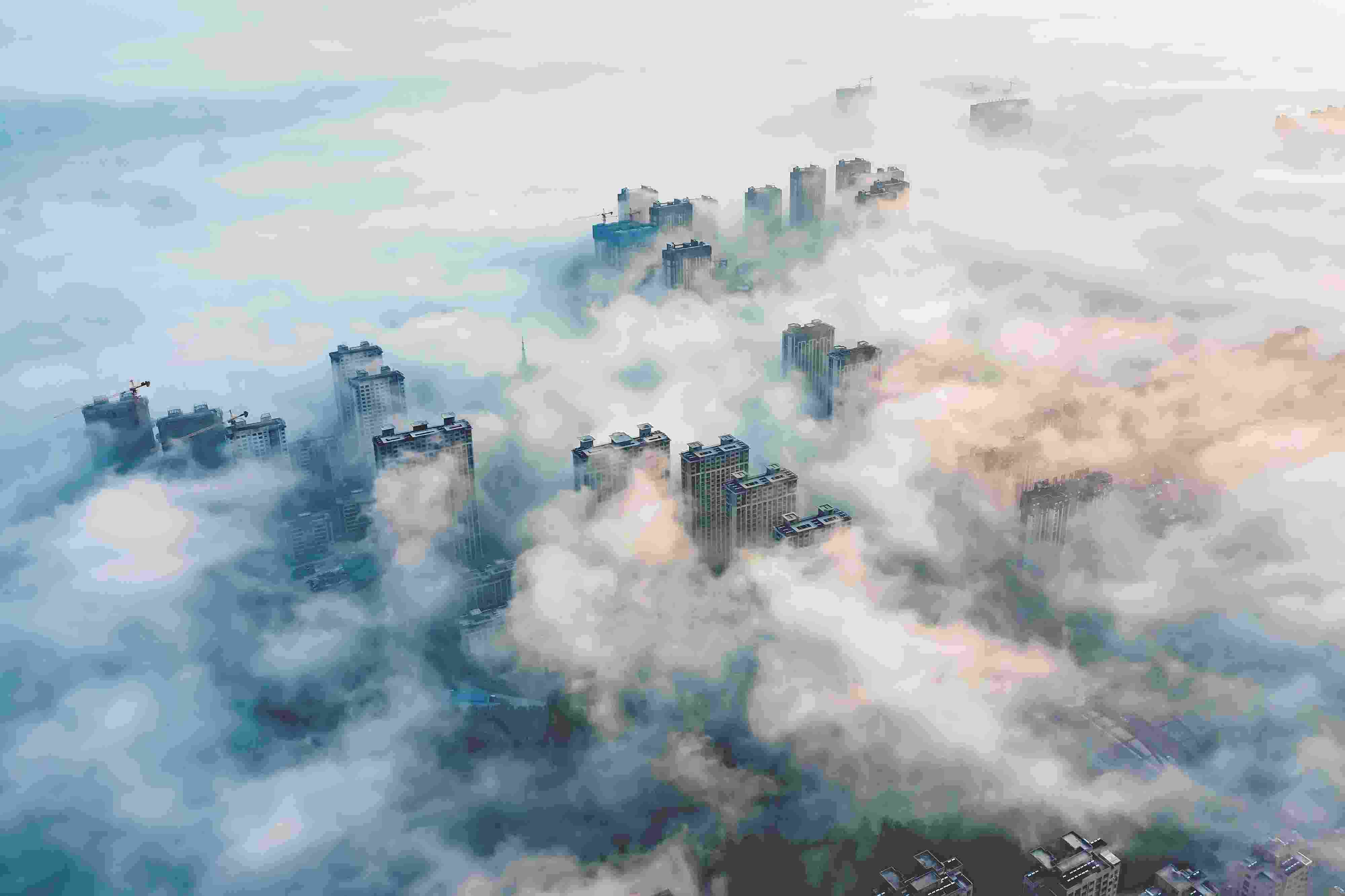 2023年6月11日,江蘇連云港東??h,城市上空云霧繚繞,蔚為壯觀。 視覺中國