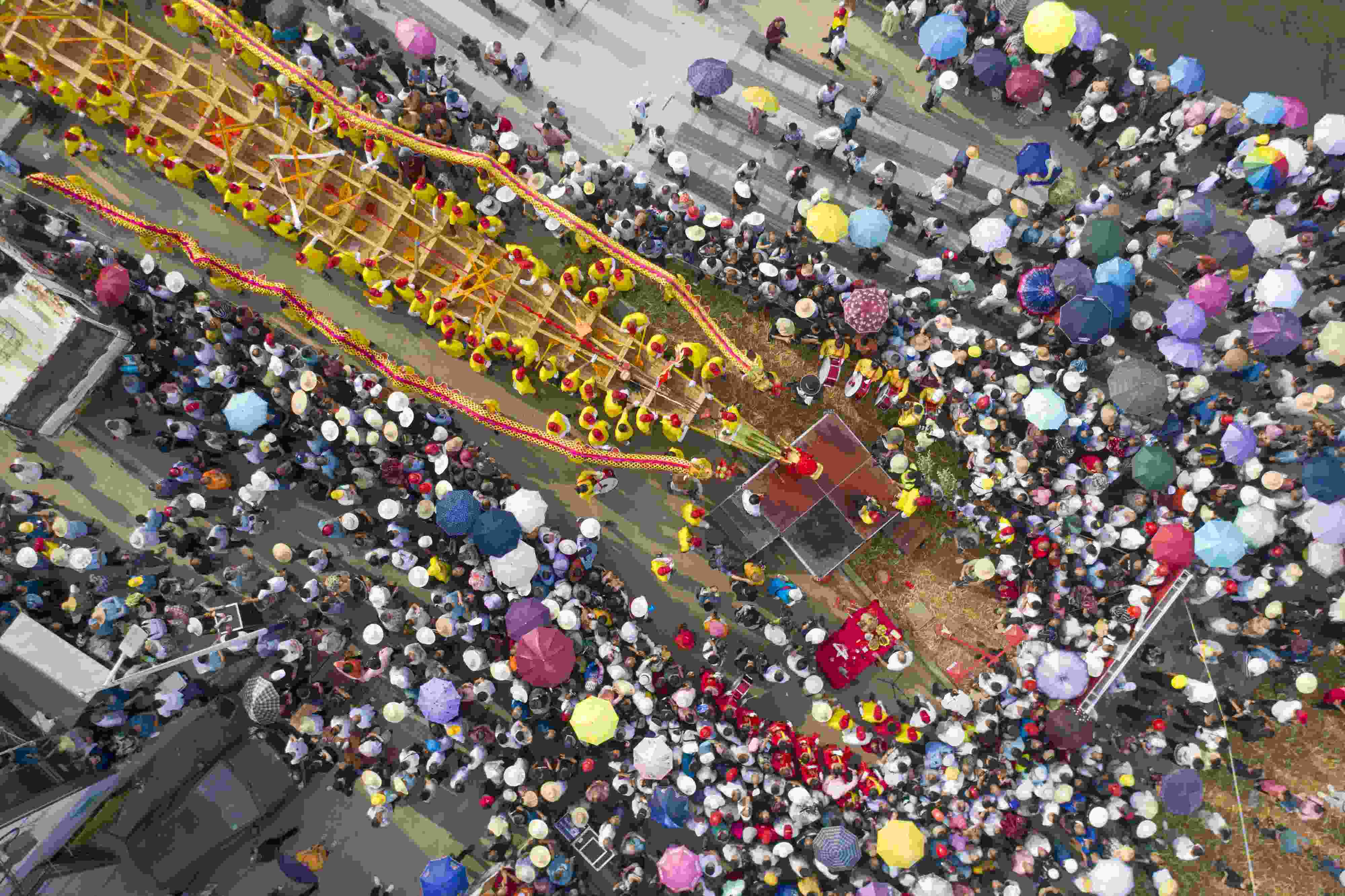 2023年6月12日,由北岸新村打造的長(zhǎng)達(dá)99.9米的巨型雙橈龍舟在湖南省益陽(yáng)市赫山區(qū)蘭溪鎮(zhèn)舉行“百米龍舟”登江儀式。 視覺(jué)中國(guó)